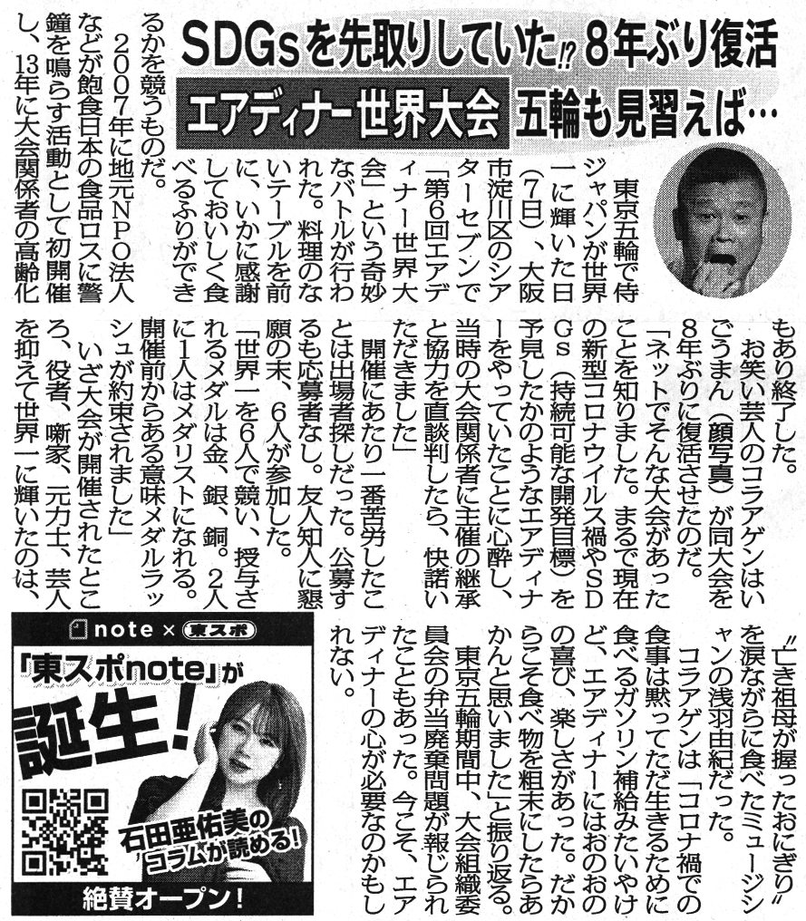 【掲載記事】大阪スポーツ2021年8月14日付